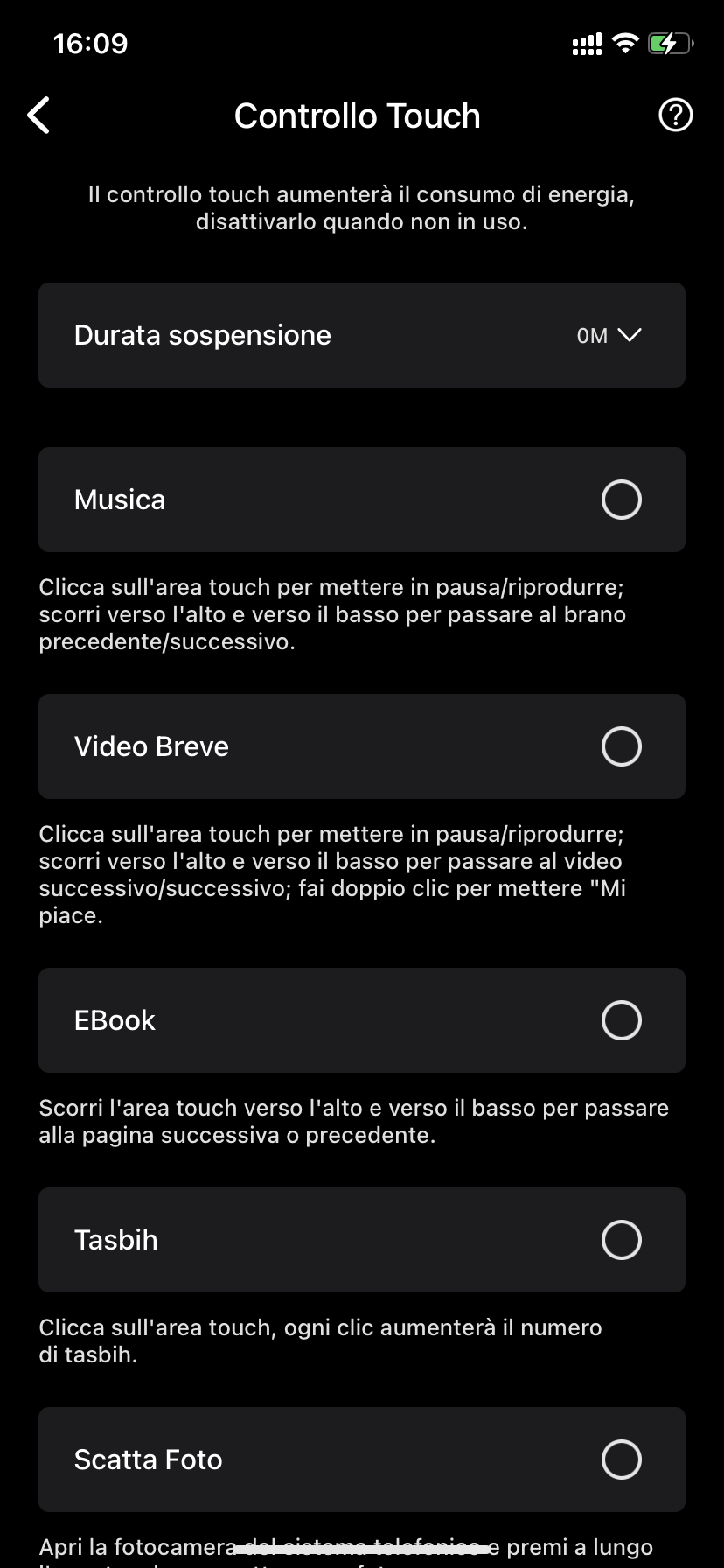 A. Attivare il controllo touch o il controllo gestuale