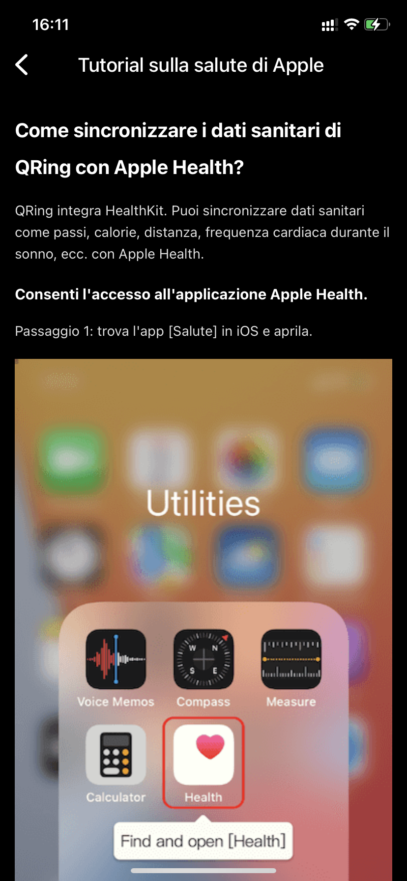 Q. Come sincronizzare i dati sulla salute dal Ring Smart con Apple Health?